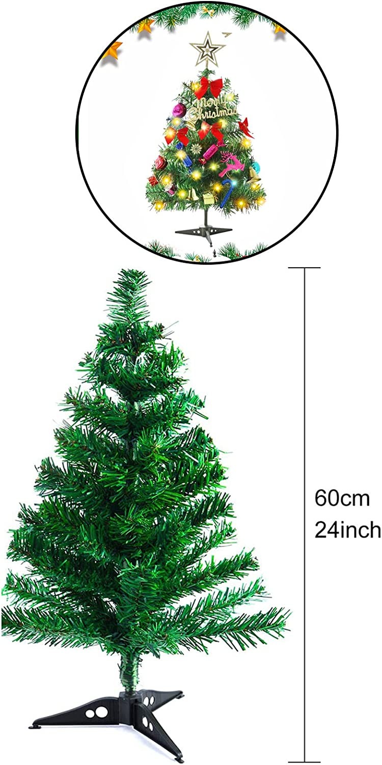 24"/60cm Tabletop Xmas Tree, Artificial Mini Christmas Pine Tree with LED String Lights & Ornaments (Xmas Tree)
