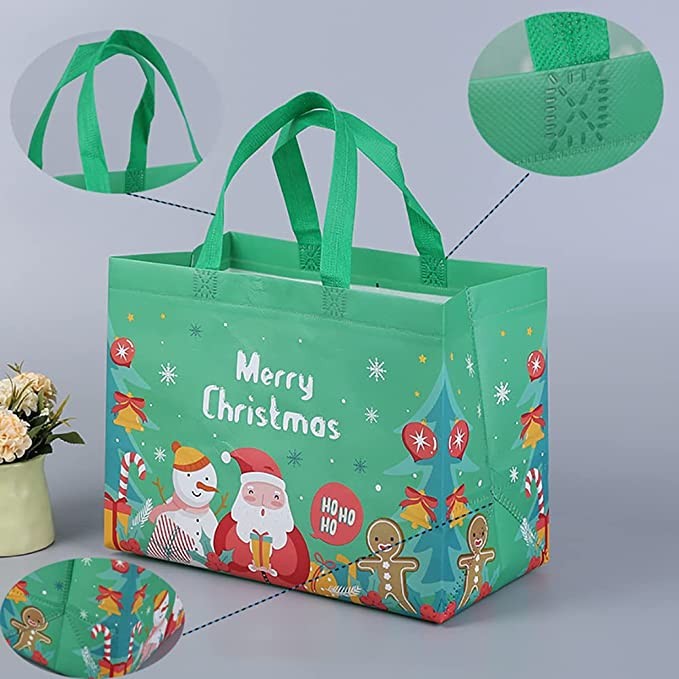 DOJoykey 12pcs Large Christmas Tote Bags with Handle, Reusable Christmas Gift Bags Shopping Bag Wrapping Bag Xmas Holiday Party Decoration