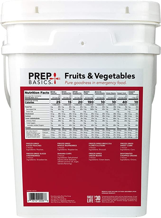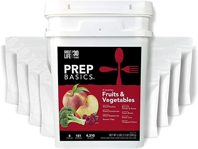Prep Basics Fruit & Vegetable Assortment | Emergency Food Supplies | Freeze Dried & Dehydrated | Total Calories 4,210g Protein | Up to 30 Years Shelf Life | 8 Ziploc Bags
