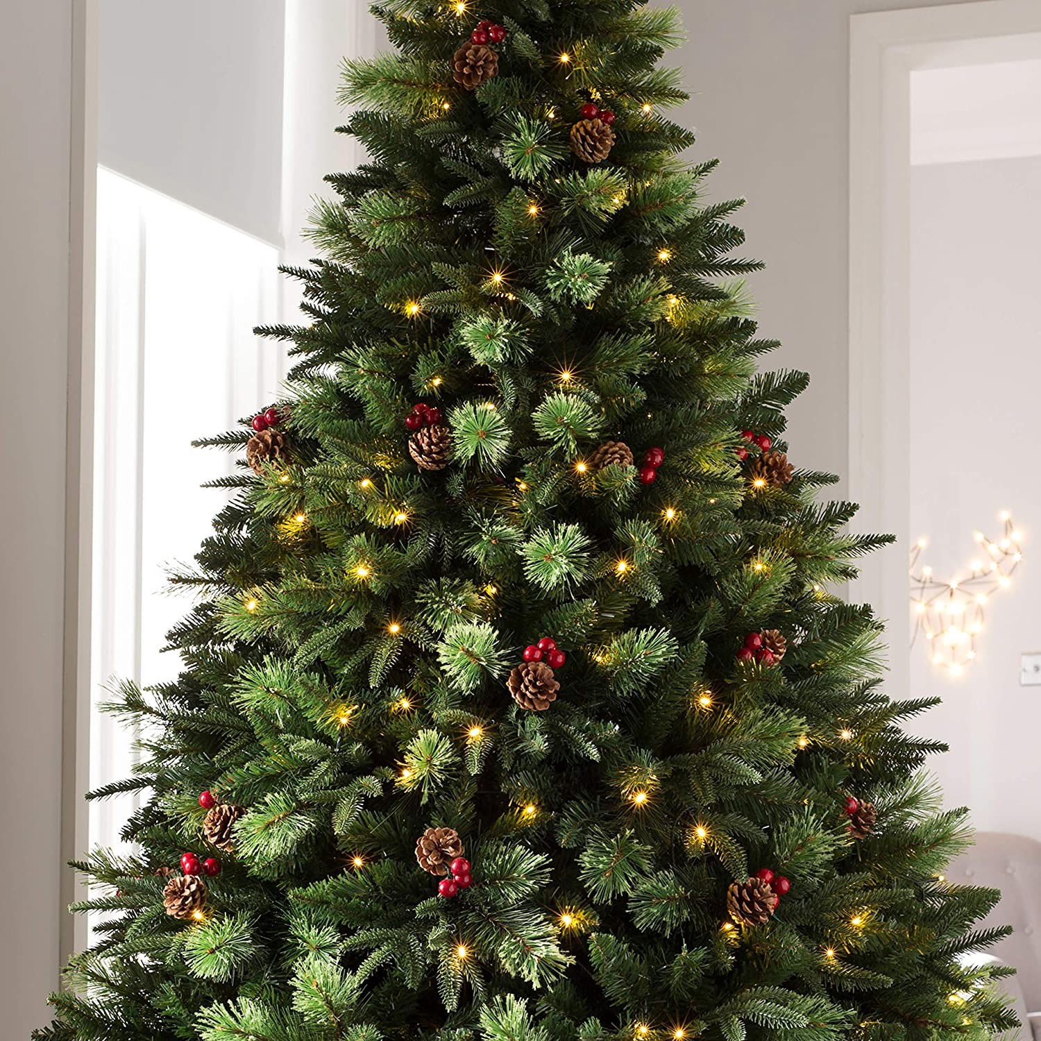 The tree has a hinged construction and boasts 1236 mixed tips for a realistic natural look