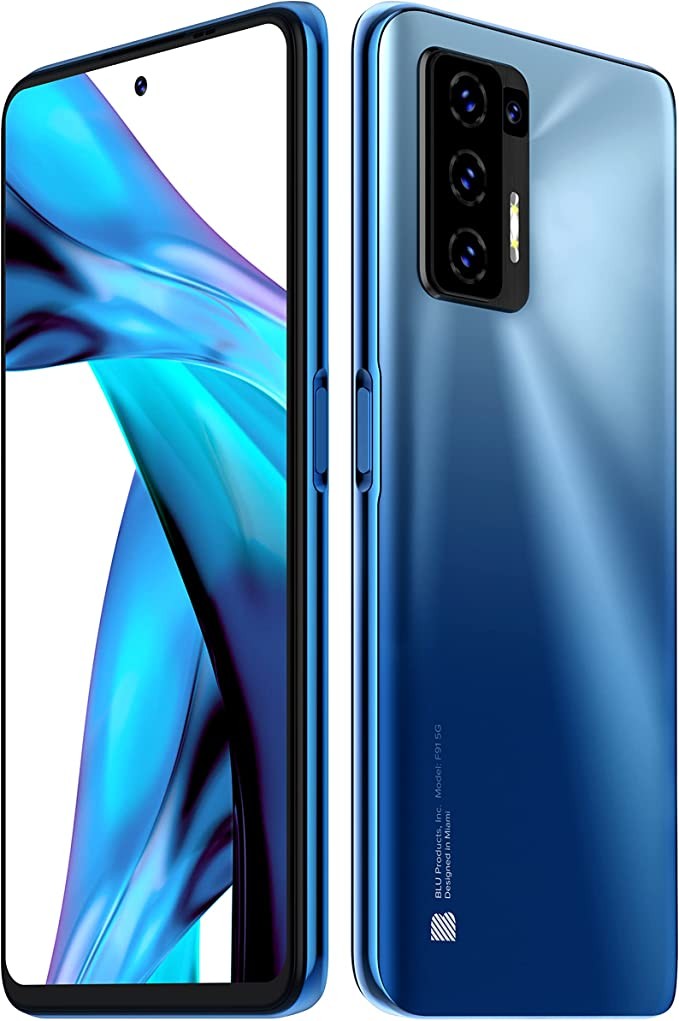 BLU F91 5G | 2022 | 3-Day Battery | Unlocked | 6.8-inch Full HD+ Display | 128/8GB | 48MP Quad Camera | US Version | Sky Blue