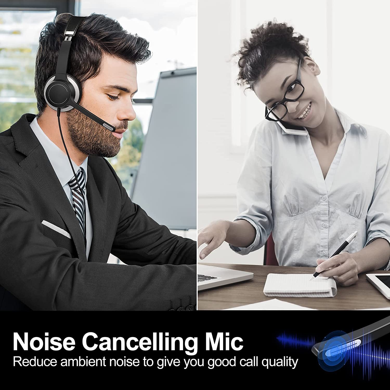 • ❇ Noise-cancelling microphone. The noise-canceling USB headset has a built-in noise-canceling microphone that reduces static noise and echoes, ensuring calls even in noisy environments. Perfect for working or studying at home, or for conference calls. 270° flexible swivel boom microphone for optimal voice capture. Whether you wear the USB headset on the right or left, it's up to you ~