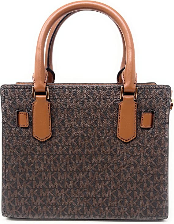 Michael Kors HAMILTON Small Satin Shoulder Crossbody Bag MK Signature Brown, Brown Pvc, NS