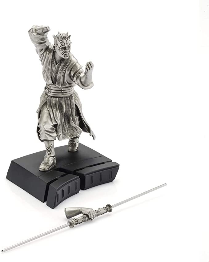 Our turquoise sculpture is in all the deadly grace of Maul, breaking his double-bladed lightsaber when he gracefully attracted the Jedi and his Patawan.